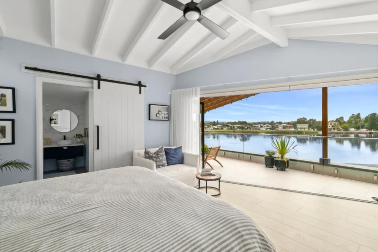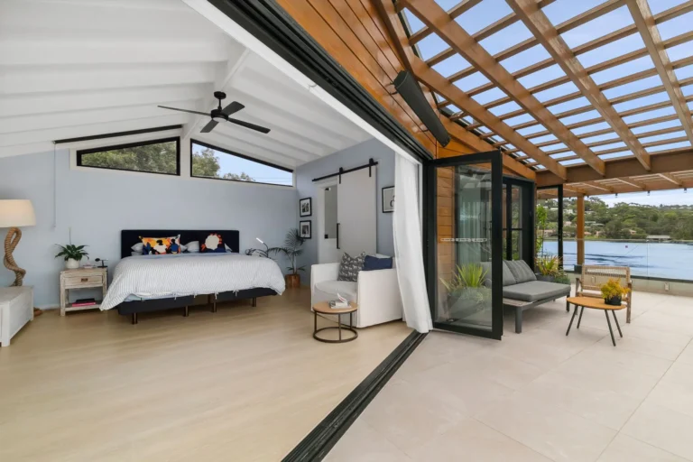 One of the standout features of this project is the luxurious master bedroom suite, which offers a spacious and private haven. The suite includes an ensuite, walk-in robes, and a dedicated office area, providing a perfect blend of comfort and functionality. A large balcony extends from the suite, providing the perfect spot to take in the expansive water views. This addition is a perfect example of how thoughtful design can elevate a space, creating a home that is both beautiful and functional.