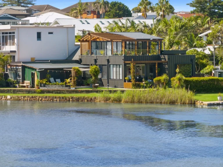 We are proud to present our large-scale Narrabeen alteration and addition project, a truly exceptional transformation. This property is located on the corner of Narrabeen Lake, offering breathtaking 270-degree water views that provide a stunning backdrop for the home. The design and materials chosen for the project harmoniously blend with the natural beauty of the location, creating a sophisticated yet serene environment. The exterior of the home features Colourbond wall cladding, which is complemented by natural cedar weatherboard cladding, creating a striking contrast that enhances the overall aesthetic.